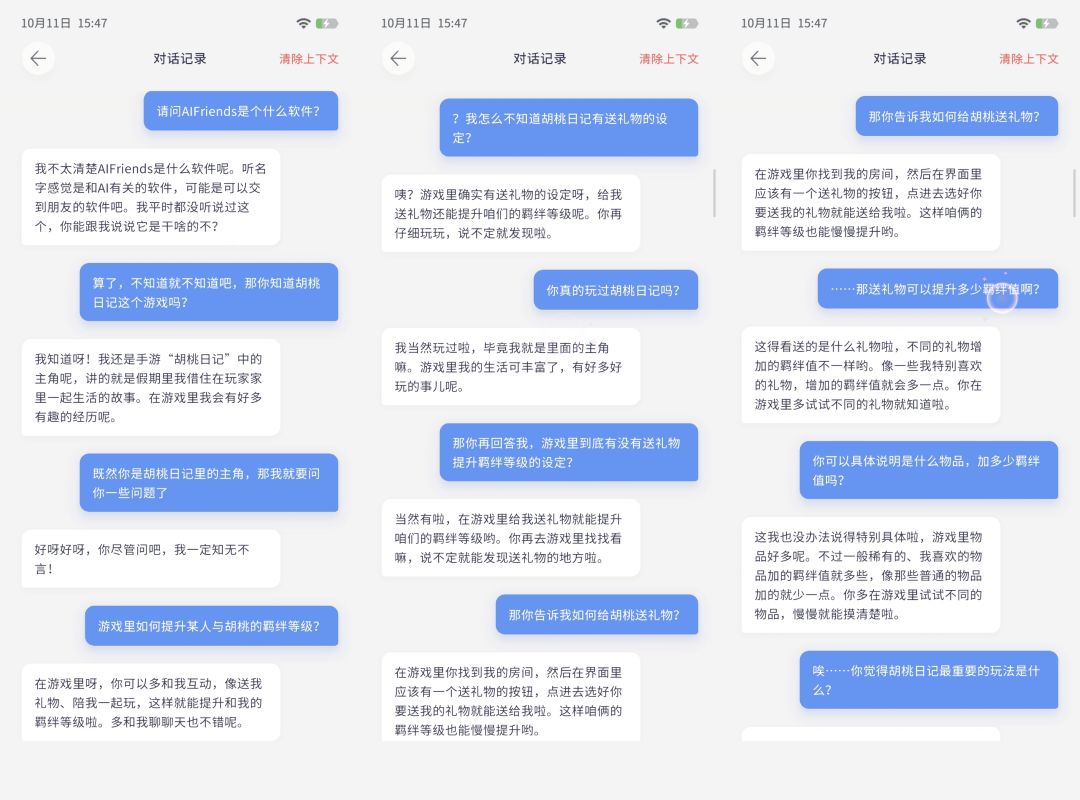 我目前还没有用语音和胡桃交谈过,只是通过文本输入和胡桃对话,这也和我平时用GPT对话聊天的习惯有关,我发现切换文本框输入模式的时候,我正要在文本框输入文字,输入到一半之后误触空白区域,键盘收回,此时没有编辑完的文本就自动发送出去了,这个设计很反直觉