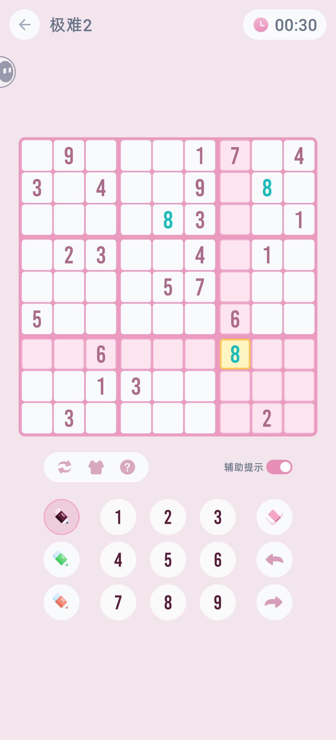 在手机低亮度的情况下不管是蓝色粉色还是黑色,选中图中的8时,其他的8颜色都很淡,很难和其他数字区别开来,就很难受的一点,被选中的数字和未被选中的数字颜色区别不是很大,很费眼睛,再改一改官方桑