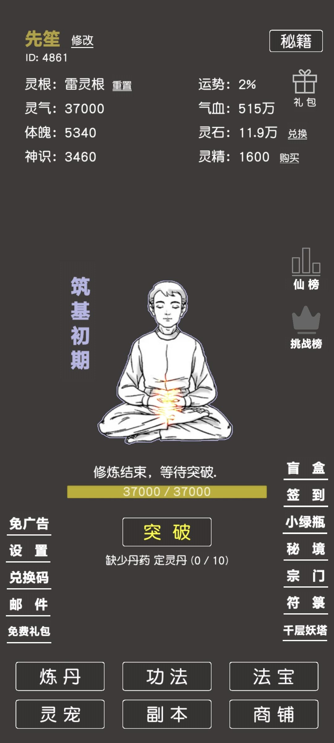 玩了两天不是很能理解,两万的灵精你是怎么觉得能拿得到,我就氪了一个六块钱买了一个鼎为了方便炼丹,如果不是喜欢修仙这个id你这个比一念逍遥都垃圾,玩一念逍遥不氪金都不怕练不上丹药