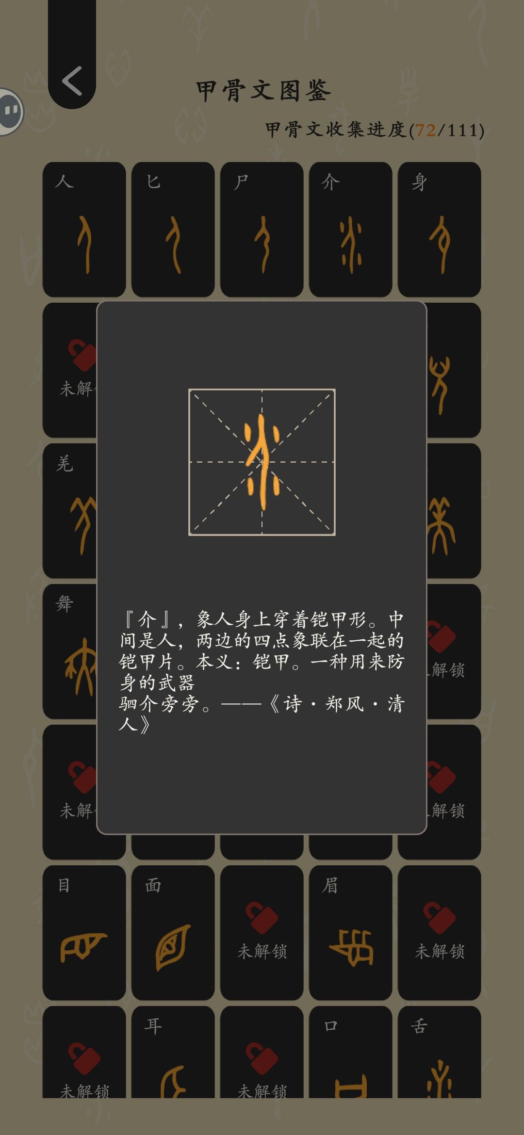 寓教于乐的学习甲骨文的游戏!!!🪄耐玩度:我觉得还是挺耐玩的,起码我在边学边玩,同时发动脑力怎么更快通关。毕竟也还有时间限制这码!💡游戏创意:太棒了,寓教于乐!第一眼字怎么来的。哇,形变!而且画面底色对眼睛很好,音乐很经典的曲!🌃画面音乐:太治愈舒服!!还没玩完全部呢!!后续后续!!