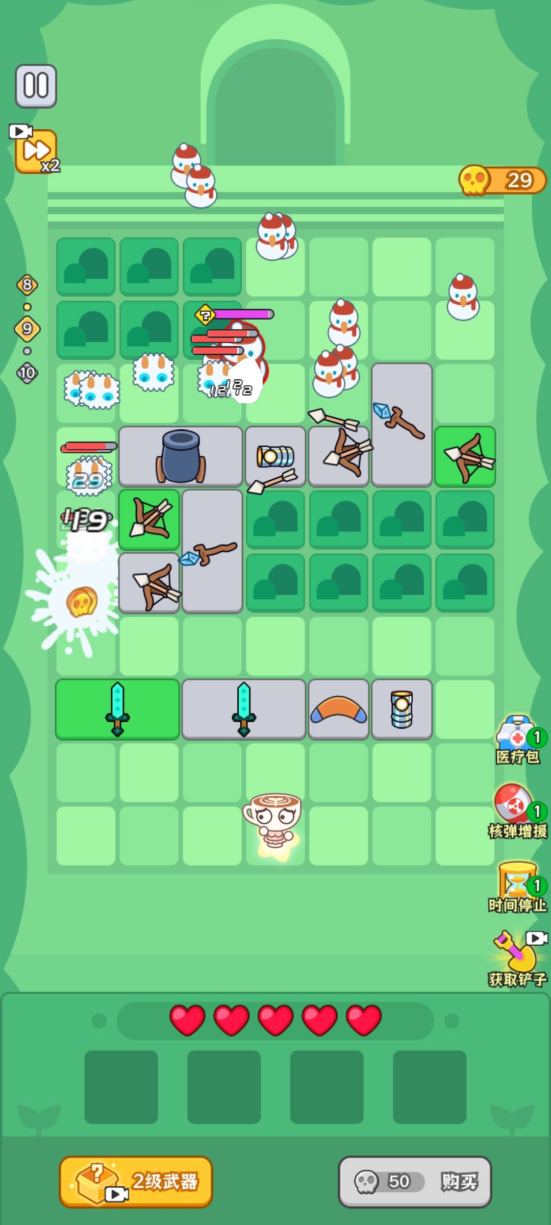轻度塔防类游戏,和某个小游戏很像。塔防地形相对固定,有一些障碍物可以拆除,增加闪转腾挪的空间。炮塔消费金币随机抽出,已上场的炮塔可以合成晋级,很常见的白绿蓝紫金设定。炮塔种类很丰富,所占地块格子有差别,有一定摆放策略。战斗支持多倍加速,本质上还是需要看战力的数值化游戏。