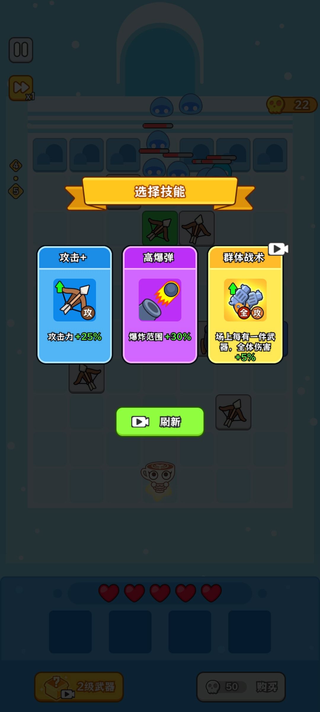 养成包括炮塔和英雄两部分,数值很轻度,同小游戏数值结构,以逐渐放大的升级需求来增加游戏时间。