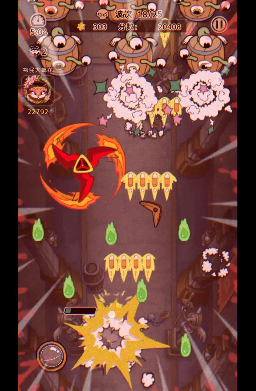 首先是第一点,既然是在手游端的STG,那操作时的指触精度就是格外需要注意的一点,起初我一直默认是点判定,直到遭打惨了库库掉血,才反应过来判定区域比我想象的大不少,可是这是个手游啊!本来战斗中弹幕可读性就低,这下操作起来都心惊胆战够费劲。以及打击感并不强,所以总觉得爽感不上不下的,总差了那么一点儿。