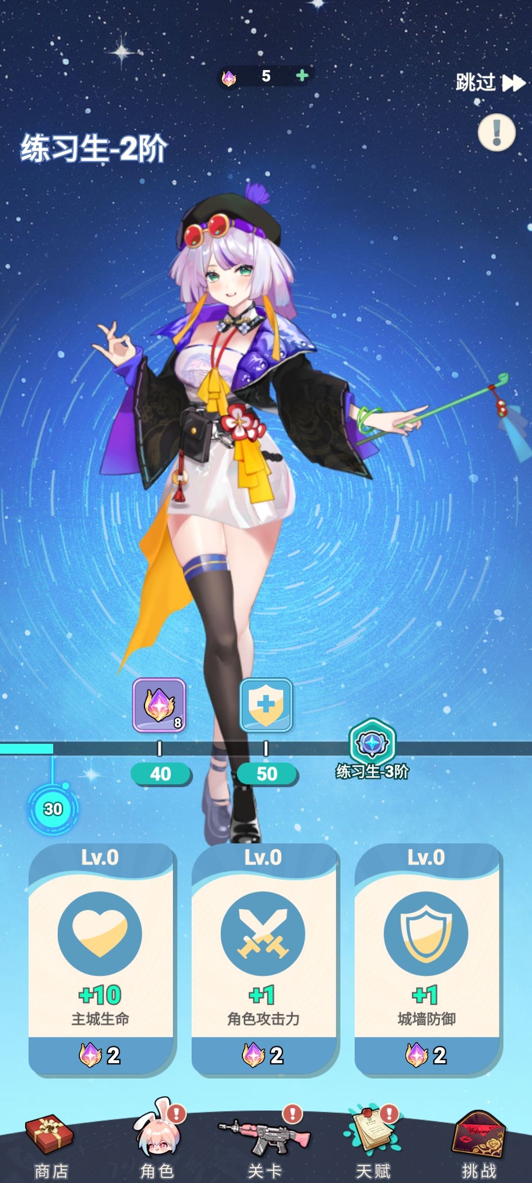 包括练习生、偶像和天赋三部分,数值结构像一些轻度游戏设定,通过放大升级需求来增加游戏时间。