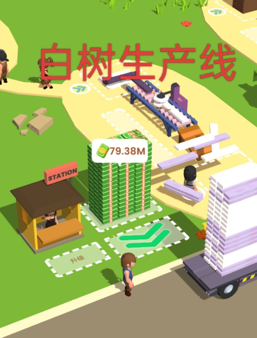 大概一个小时通关了(第一图),秘诀就是砍高等级的树,到之前的生产线加工😂这样一轮就能挣几十M