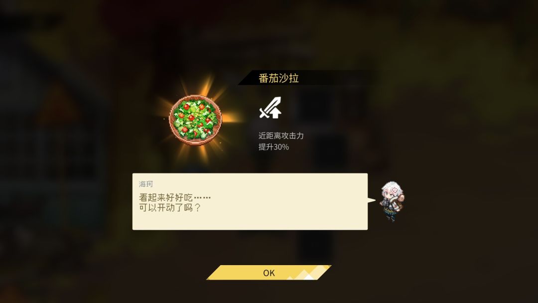 在露营里还可以料理,剧情推进、商店那里可以购买食谱,收集到对应食材就可以进行料理,料理可以让你在下一次闯关时获得各式各样的buff,比如加体力、加攻击等等;