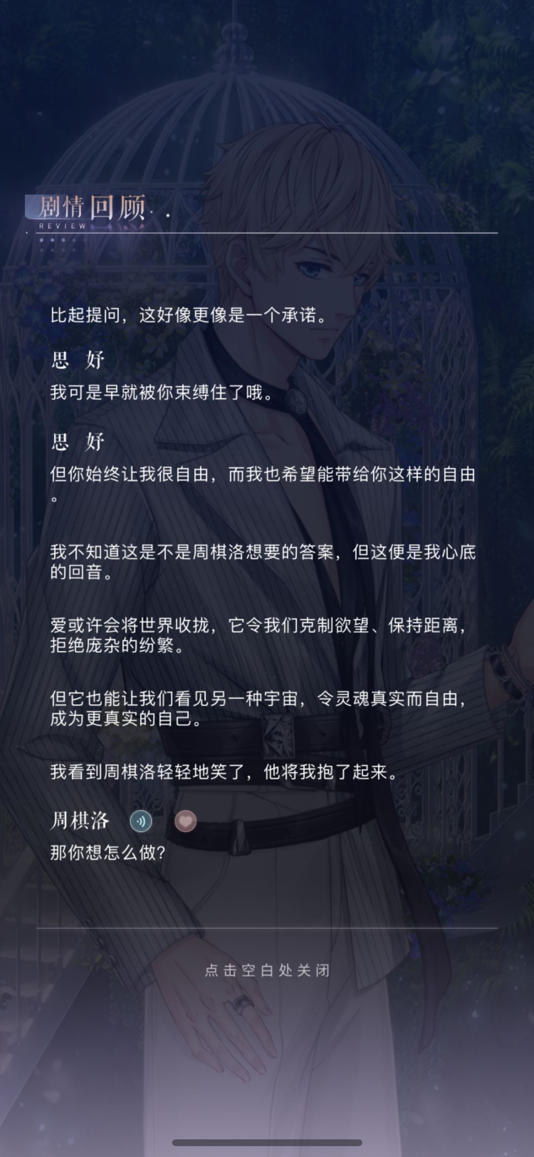 但是正因为我们是相似的 所以我也会敏感自卑多虑 太沉浸了的时候我甚至会想他会不会和别的女生拍感情戏毕竟还有演员这层身份(不要骂我魔怔ToT) 因为早期的一些文案短信以及对演员身份的刻画有点过多了所以我真的会忍不住想 我觉得他那么爱吃醋的一个人也能体会到这种不安 这种酸涩感 所以这个花卡的约会真的写得很好 也让我更安心啦 让我意识到原来一段健康的关系是会给予对方安全感的呀 洛洛的别的约会也让我感触很深 我也在慢慢学会更好地去爱人 你总说我治愈了你 你又何尝不是呢 太多话了说不完 总之谢谢恋与制作人创作出这么鲜活的周棋洛 文案组描绘出一个细腻的周棋洛 美术组带来的神颜周棋洛 还是好好经营能让周棋洛陪我久一点吧(O_o)
