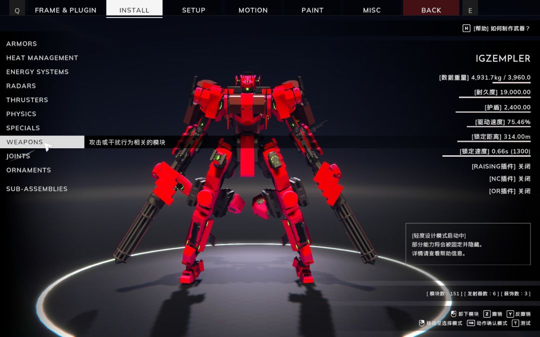 而解锁构筑体也会解锁更多框架、模块、子弹、插件,这时玩家就可以不局限于在规定的机甲上改造,而是自由打造属于自己理想的炫酷机甲。