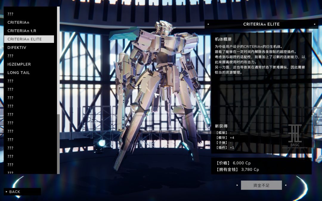游戏中随着关卡进行,完成一些任务会解锁更多构筑体,他们有的注重攻击,有的注重性能,而玩家花费金钱可以解锁使用权,在此基础上可以自由DIY设计,增添各种组件模块等等,改变性能。
