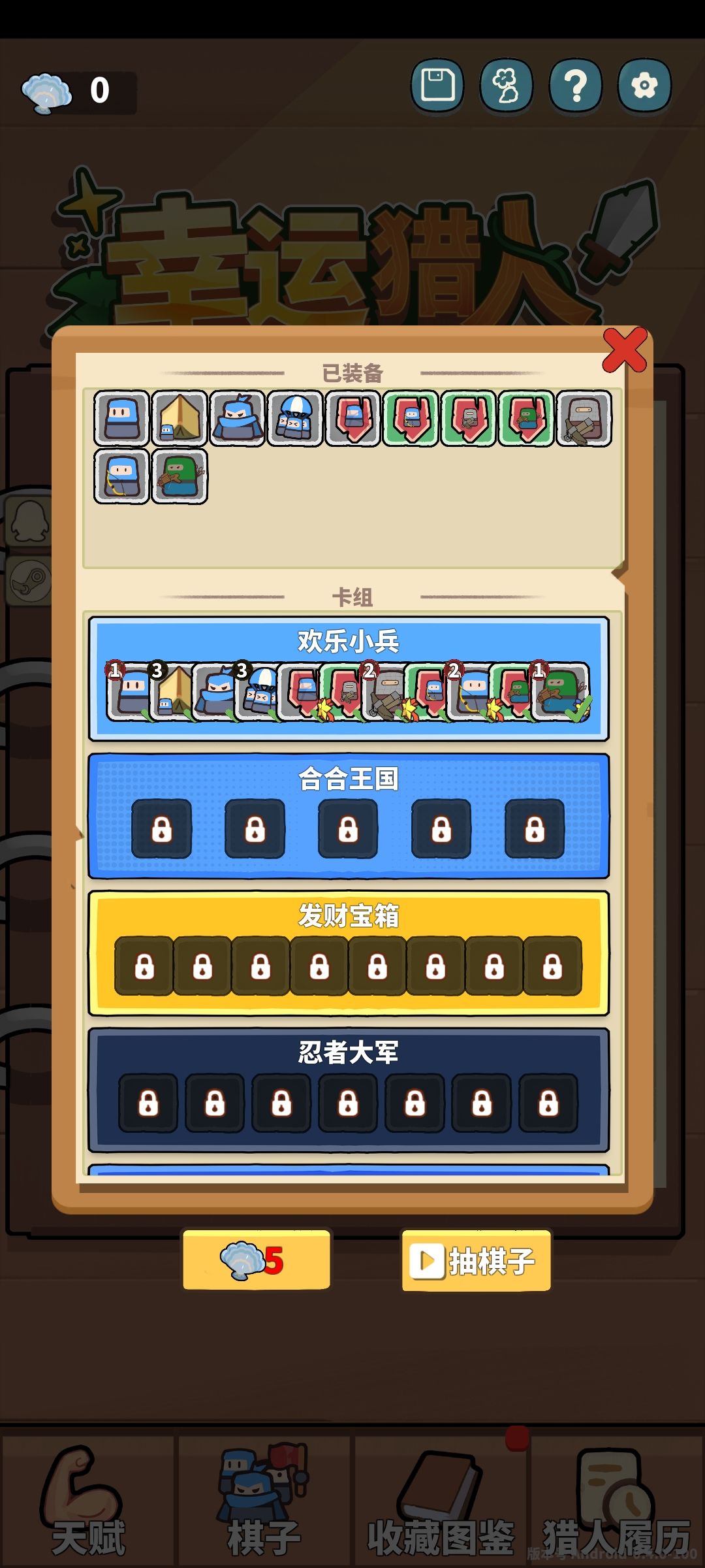 棋子种类很多,有多个主题棋子,解锁后可以自由装配。已装配的格子总数有限,在满足解锁基数情况下,有搭配组合空间。