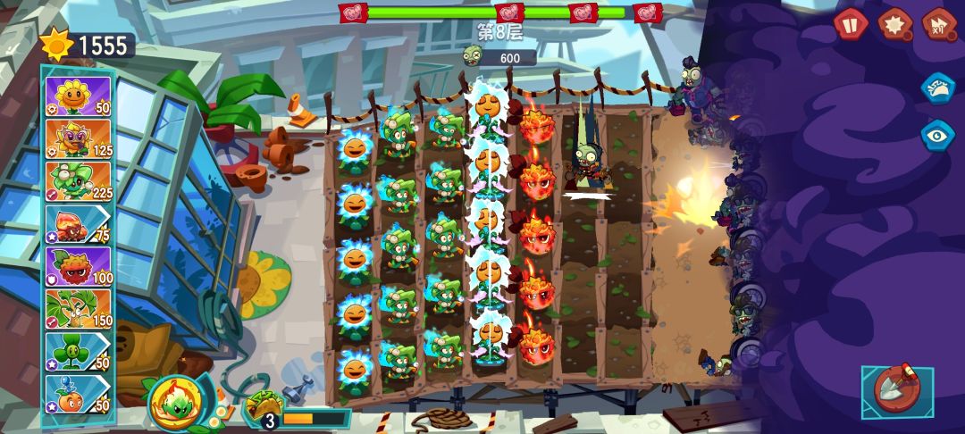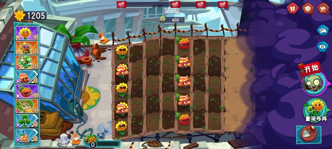 如果你是一位0氪玩家而且脸黑,可以参考一下我的(打塔)阵容(图在下方)下面放的植物都建议去养,爬塔还是挺好用的,记得调一下帧率(不建议开二倍速会很卡),途中烈焰槲可以平替为火西瓜,如果开局阳光不够优先给荔枝火,接下来给每排小向日葵火看僵尸出处中植物(开局阳光不够的情况下,西瓜先换成卷心菜)其中一张图为开局800阳光的情况下的种植建议