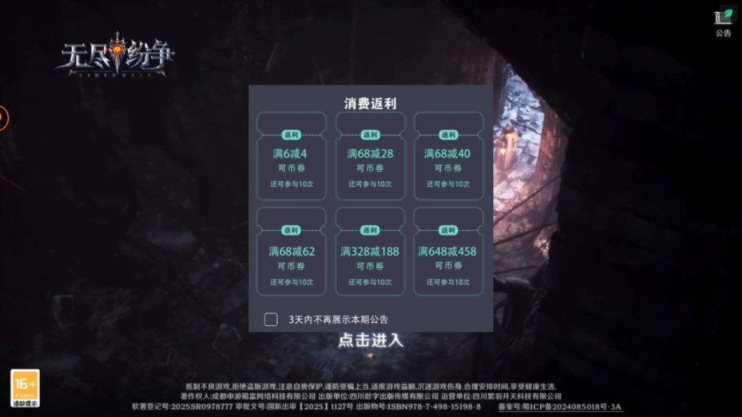 这游戏原来叫无神之界,后来叫神谕之战!这游戏同样的官服不同的下载链接有不一样的折扣!!!tap下载的什么折扣都没有!!