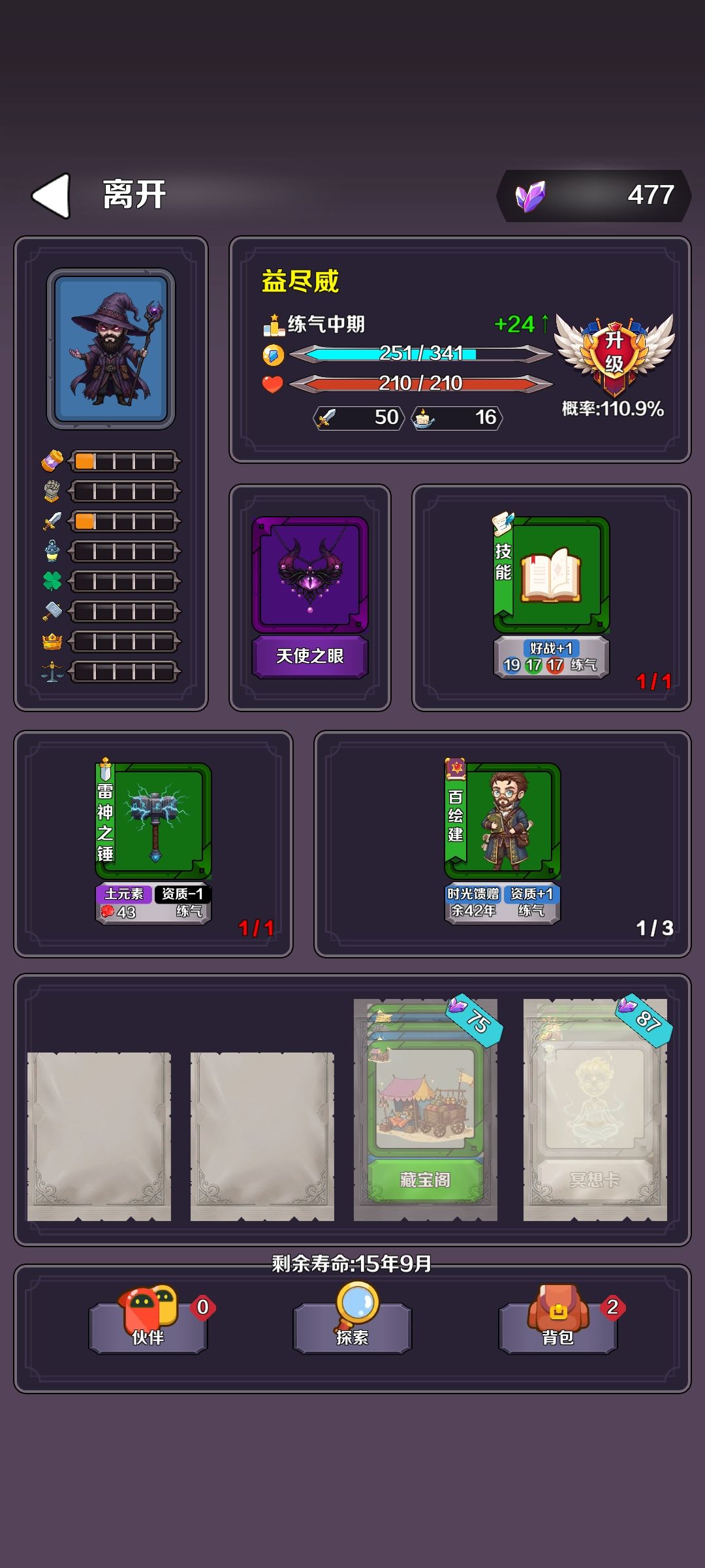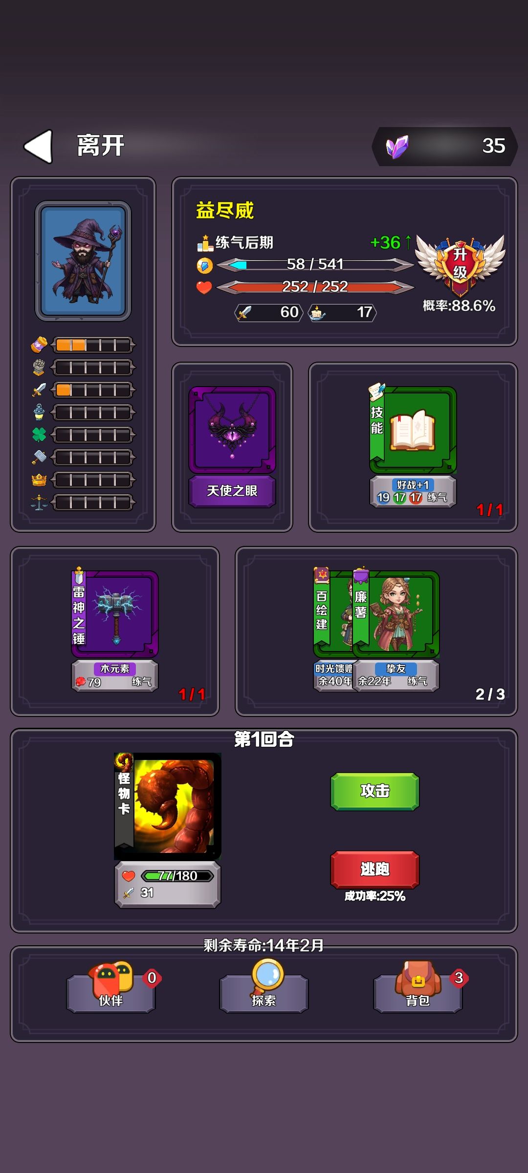 1-背包中的伙伴和卡牌建议可以选择顺序,有的时候错开一下先后顺序,会产生幸存者效应,成功概率可能会大一些。