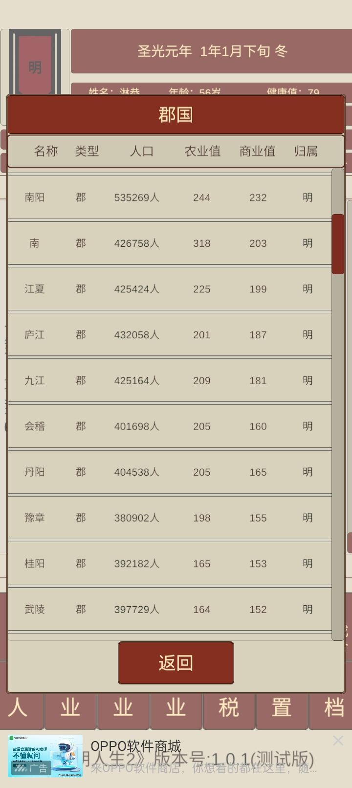 呃,说下感想吧:无聊的时候玩还挺好的,然后你基本上官职到丞相之后,甚至没有到丞相,就是那个工资嘛,到4000你就可以不用种地了,甚至3000就不用了,没粮食直接买就行,但尤其是那个爵位太少了,到公候后面就顶了,其实还可以加一些,比如像王爵等等,前景很好,很期待。