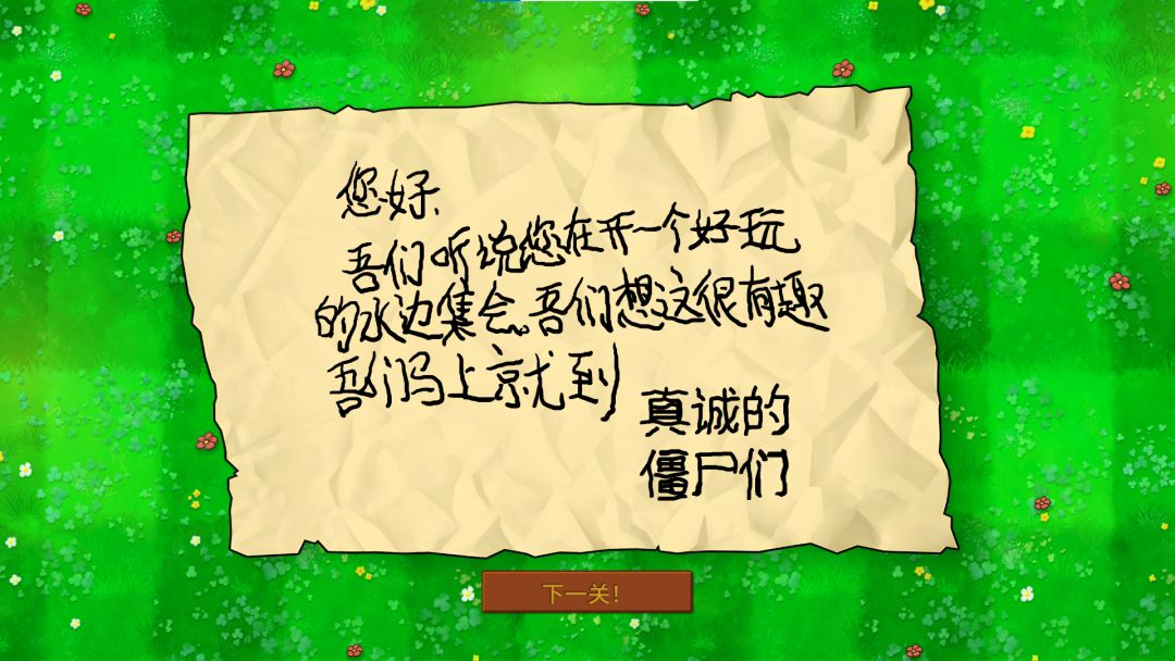 1. 外观性:相比原版提升了画质,但仅此一个优点而已,动画存在错位等问题;语言汉化方面,字体大小及其不规则,用的是黑体,且整体UI看上去就好像把界面上的英文用百度拍照翻译生硬替换成了中文一样,美观性极差;僵尸的字条采用了中文年度版字条,字体是歪歪扭扭的手写体且有错别字,符合原著,但部分字条的落款部分硬生生换成了扭曲的黑体,看起来极其违和