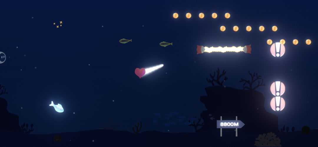 我没招了。我玩了快10分钟了,鱼的变化没多少,然后我进化的小鱼会往前面游了,也会消失。,感觉我的大腿没多少变化,然后他飘的这种爱心道具,我吃到以后也没有消失,导致我都不知道是吃到还是没吃到。然后他的那些障碍我碰到了,我也不变小,也不扣血什么的。我就这样纯吃豆子,还有那个净化小鱼,玩了10分钟,困死了。