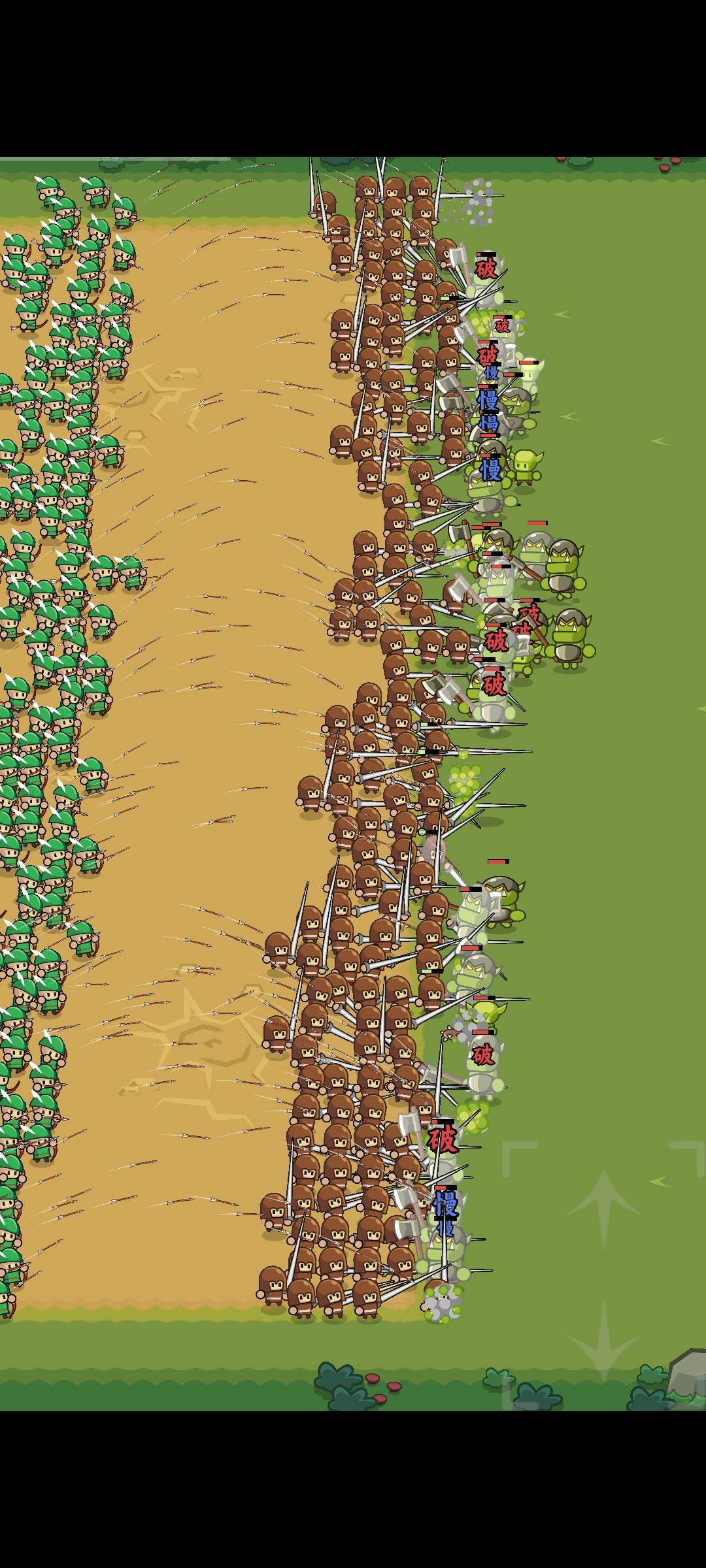 就跟icon一样的简化小人画风,场景也就一个。不过各兵种特征,动效做得还是挺清晰流畅的。看着有大兵团对战的爽感。没什么音乐音效。