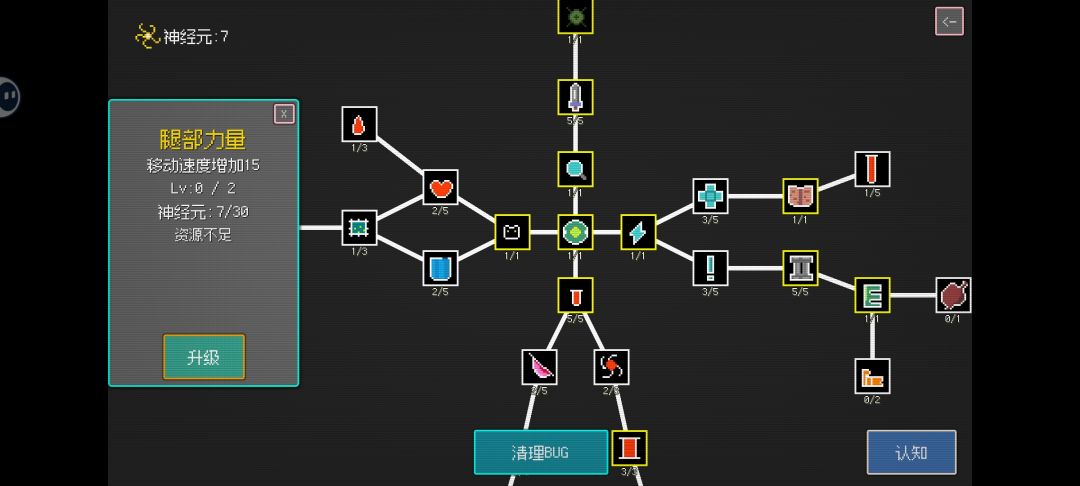以关卡制进行游戏,其他关卡解锁都需要消耗神经元,通关是游戏目标之一。