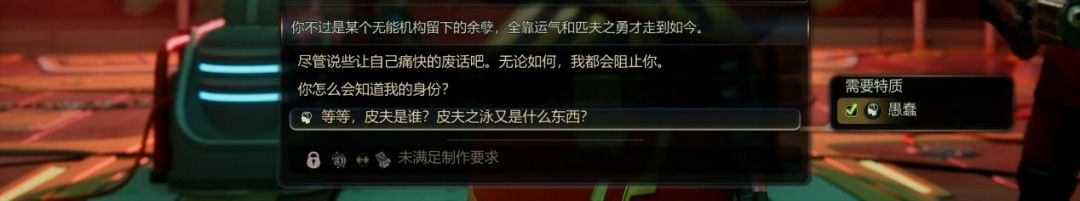 首先是黑曜石工作室一贯以来的独特且大量的抽象文本,不管是和NPC之间的对话,还是这次继承且发扬光大的“缺陷”系统,都能感觉得到制作组在搞笑抽象这方面是认真的,哎!那我就要重点说说这个缺陷系统了!😋😋这应该是我觉得最有意思的一个地方了,游戏中除了我们使用专精点来进行专长的加点,但这只是解锁一些专长的初始属性,至于后续的能力还需要额外进行升级解锁(超像辐射系列的special系统啊!😂😂)而缺陷方面则是游戏里系统会监测我们的行为,随机给我们发放独特的“缺陷buff”,例如我自己就是有着换弹癌这个习惯,弹匣不满就喜欢装弹❓那就给你整一个弹匣自子弹增加,但如果打完弹匣子弹就让你降低伤害的buff😡😡😡说实话其实buff什么的倒是无伤大雅,但是随机出现的各种缺陷和文本内容还是挺意思的😋😋谁都不知道我下次会触发什么特性😋😋还有一个也让我印象挺深的,好像是叫“盗窃癖”触发条件就是经常性偷东西,效果是让偷来的东西售价翻倍,但是坏处就是有时候会当着别人的面偷,然后被抓包,接着进入战斗,这些个抽象的缺陷真的确实让我一开始的游戏时光真的很欢乐,当然你也可以选择拒绝这些缺陷,就做一个普普通通的正常人也完全没关系