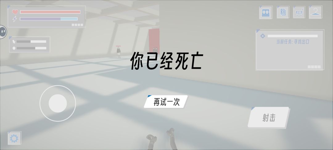 游戏流程很短,但是人物模型好看,进去要先被人打才能继续流程。射击键点一下打三次,卡距离射击敌人就能轻松过关