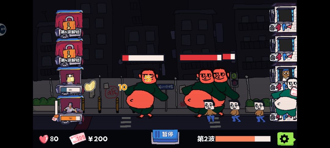 核心战斗最初看起来很普通,以为是左右互推的轻度策略游戏,直到暂停功能开启,节奏逐渐带感,才算有了些趣味性和可操作空间。暂停是针对敌方大部分人的,包括飞行道具也会一并停在空中,看上去和出了bug一样。此时我方一二三层都可以进入蓄力状态,点继续后会释放蓄力攻击效果,直到能量耗尽,视觉冲击力和攻击效果都不错,游戏核心玩点也在于此。