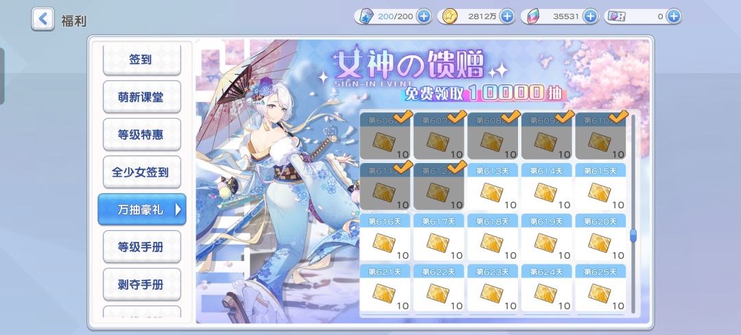 这个游戏福利多是毋庸置疑的 我看评论区很多人都在说一天才给十抽就是把萌新骗进来宰 但我觉得不至于 十抽又不用任何前提 你点了就领 喷这个真没啥必要吧 而且角色和角色皮肤几乎都是免费的 做做任务玩久一点 我觉得全图鉴也是可以的 说明 我并不是零氪玩家 我觉得我就算微氪吧 我也算不上氪佬什么的 还能白嫖两张月卡 而且限定活动的角色也有保底机制 还给你送个几十抽 如果说你又懒 然后还没钱的话 我觉得玩这个游戏是完全可以的 心情好了就上线领领奖励 心情不好 放那两三月都没啥事。