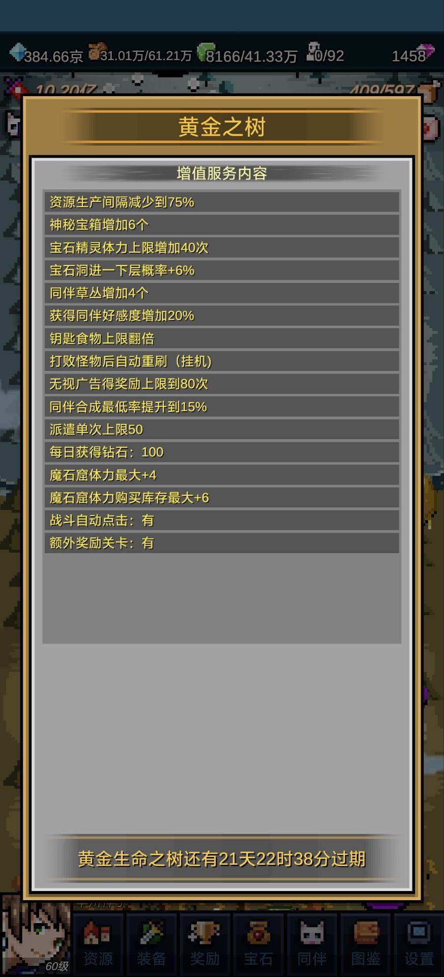 接下来是三周目,买完树之后天天挂机几个月差不多就可以通关了没买的话得打天天亮屏挂机1年多的情况。