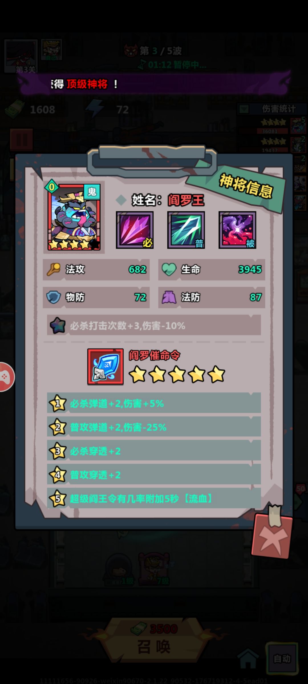 说是恐怖但是角色挺卡通的,十连抽保底红将,前期推图虽然慢,但是还是很稳定。 后面入手了无敌的阎罗王😎开始爽快割草! 前期玩着还不错,Q版角色但动作技能细节挺多,收集开图鉴的乐趣还挺爽的,后面再好好体验一下