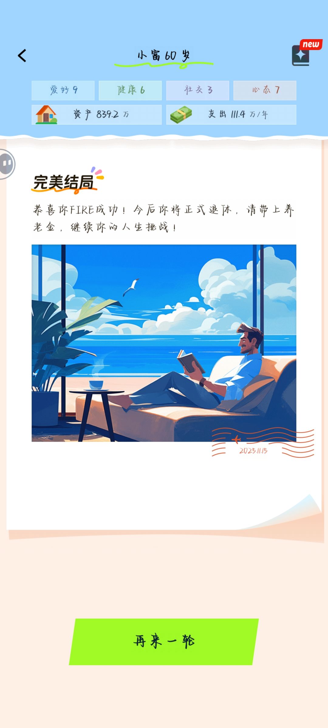在《提前退休模拟器》里,我体验了不用打卡的惬意生活——每天钓鱼、种菜、数钱,终于明白什么叫"人生赢家"。游戏把退休后的自由与琐碎平衡得恰到好处,偶尔的账单提醒让悠闲更有真实感,强烈推荐给所有想提前感受养老生活的打工人!