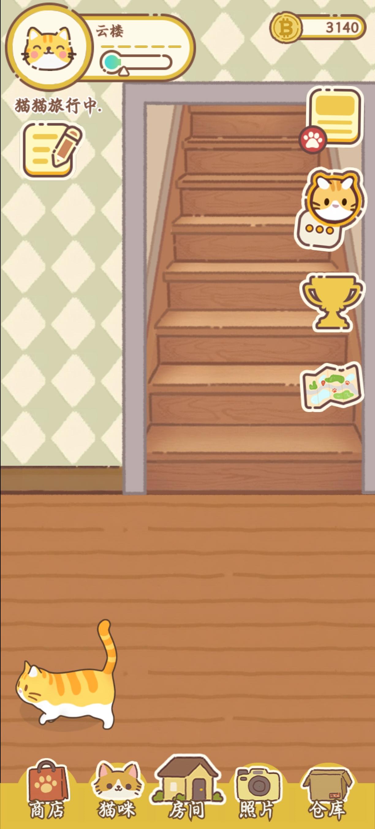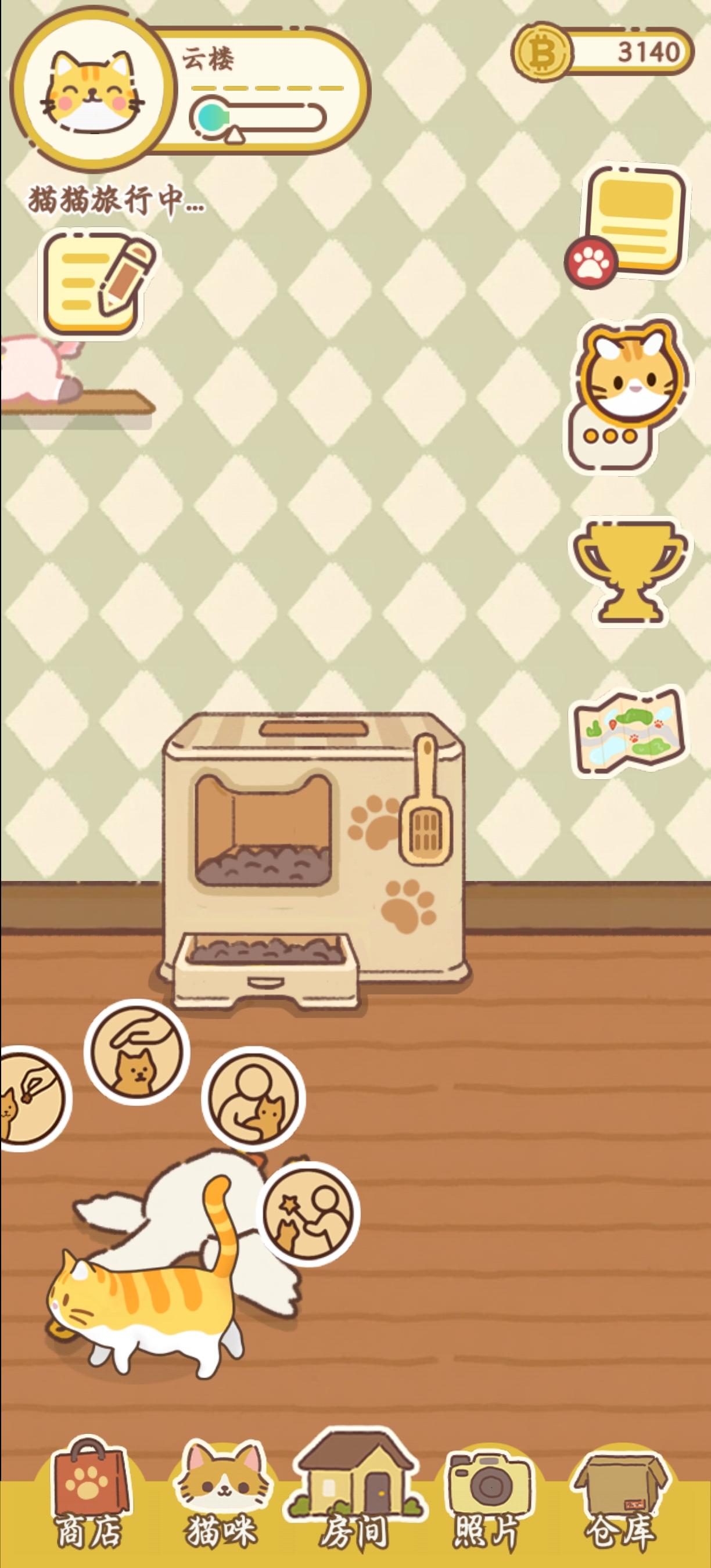 还有这个不知道是因为我跟猫猫回家的时间一样,所以导致左上角明明显示在外出,猫猫却已经到家了,也可以正常互动