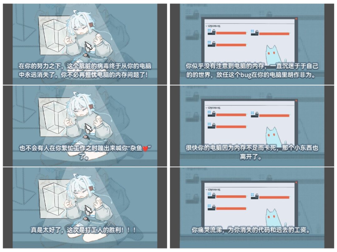 可以增加点流程和画面,现在的流程特别短,画面也很少,整体就是反复刷结局的玩法,但结局也就四五个,玩得好点的很快就玩没了。