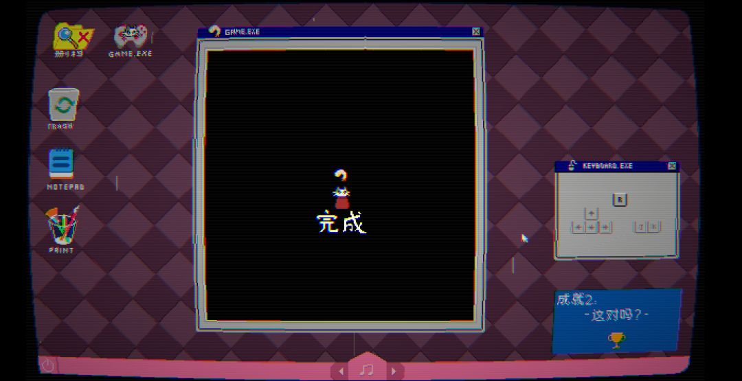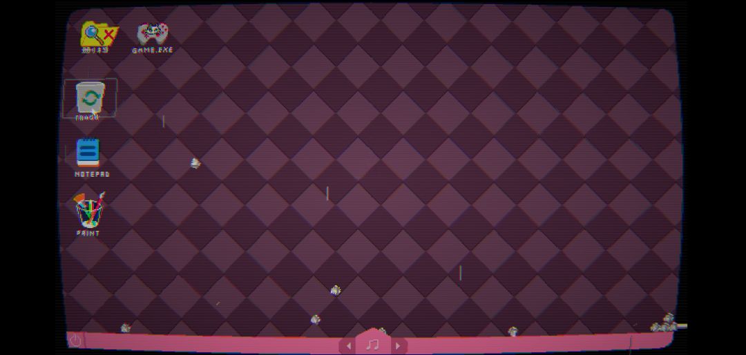 2D画面给人一种复古感,很像二十多年前的球面显示器,主界面是电脑桌面,游戏点图标进入。不玩游戏也可以看看文件夹,或者玩玩回收站。游戏界面以窗口形式展开,可以自由拖动位置,像真的在虚拟机里一样。美术资源对规则意思表达很准确,理解不难。