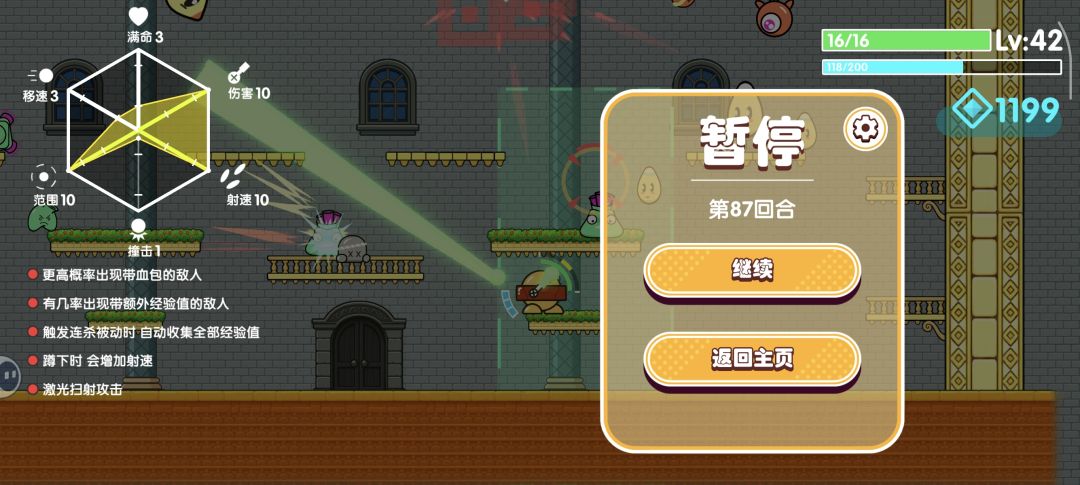 9.生命和移速的一阶效果很关键,前10关扛不住可以先点这两个属性到一阶