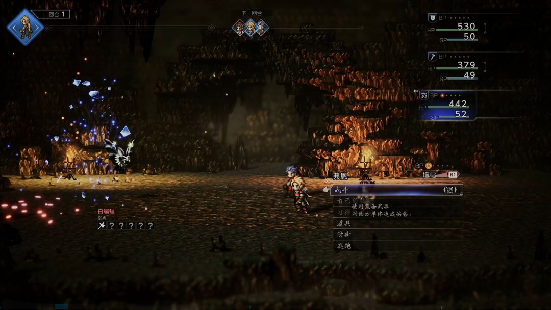 本作一共有32个角色,战斗则是可以安排8人出场,而且本作只有主角可以进行转职,其他角色的副职业都被砍了,多少是带点遗憾。新加入的“学习系统”,通过JP学习新技能,而且学会的技能也可以分享给其他队友,战斗系统依旧是系列的经典玩法,找出目标弱点,然后通过破防、增益灌入伤害。