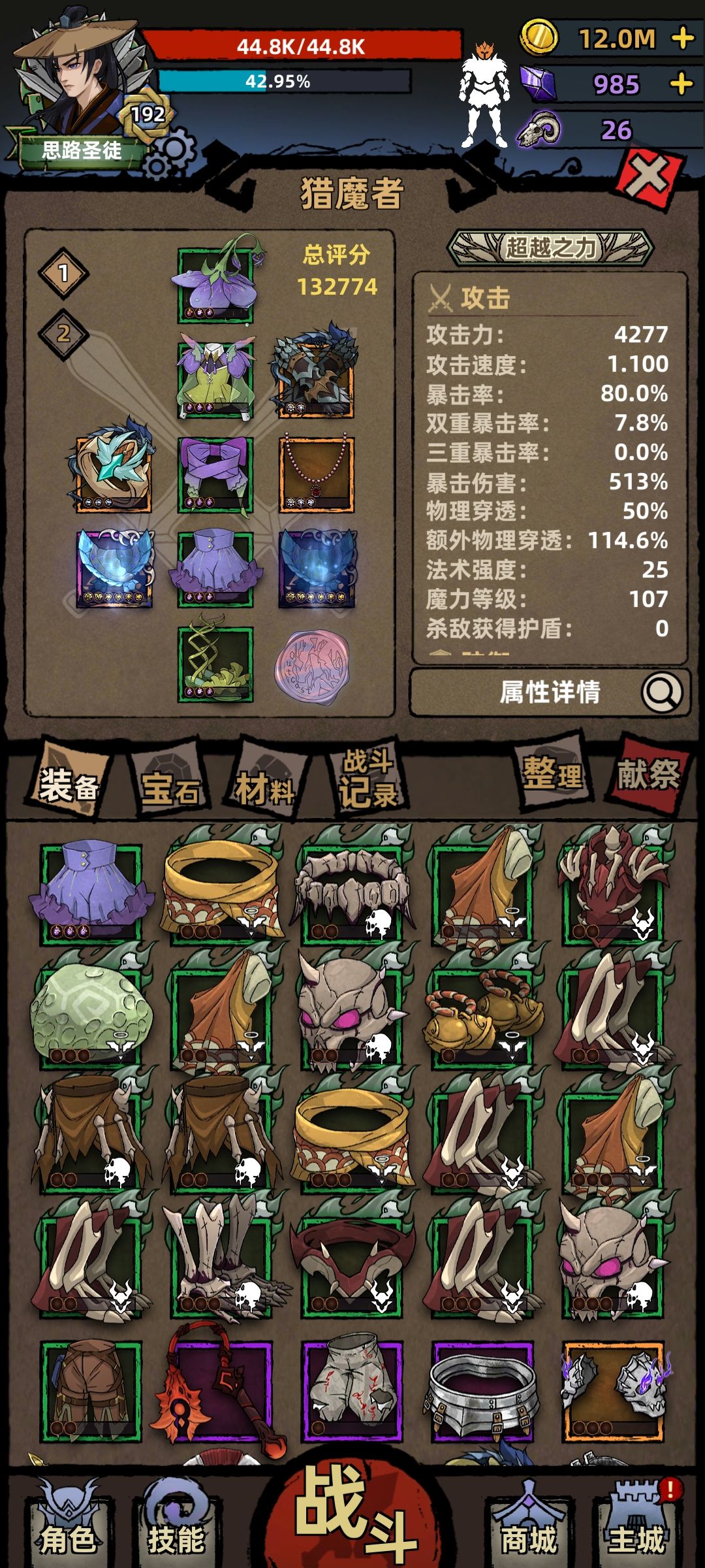 猎魔通关,摸爬滚打正常通关,希望给全部装备图鉴详细书,我换错好多套装了😂