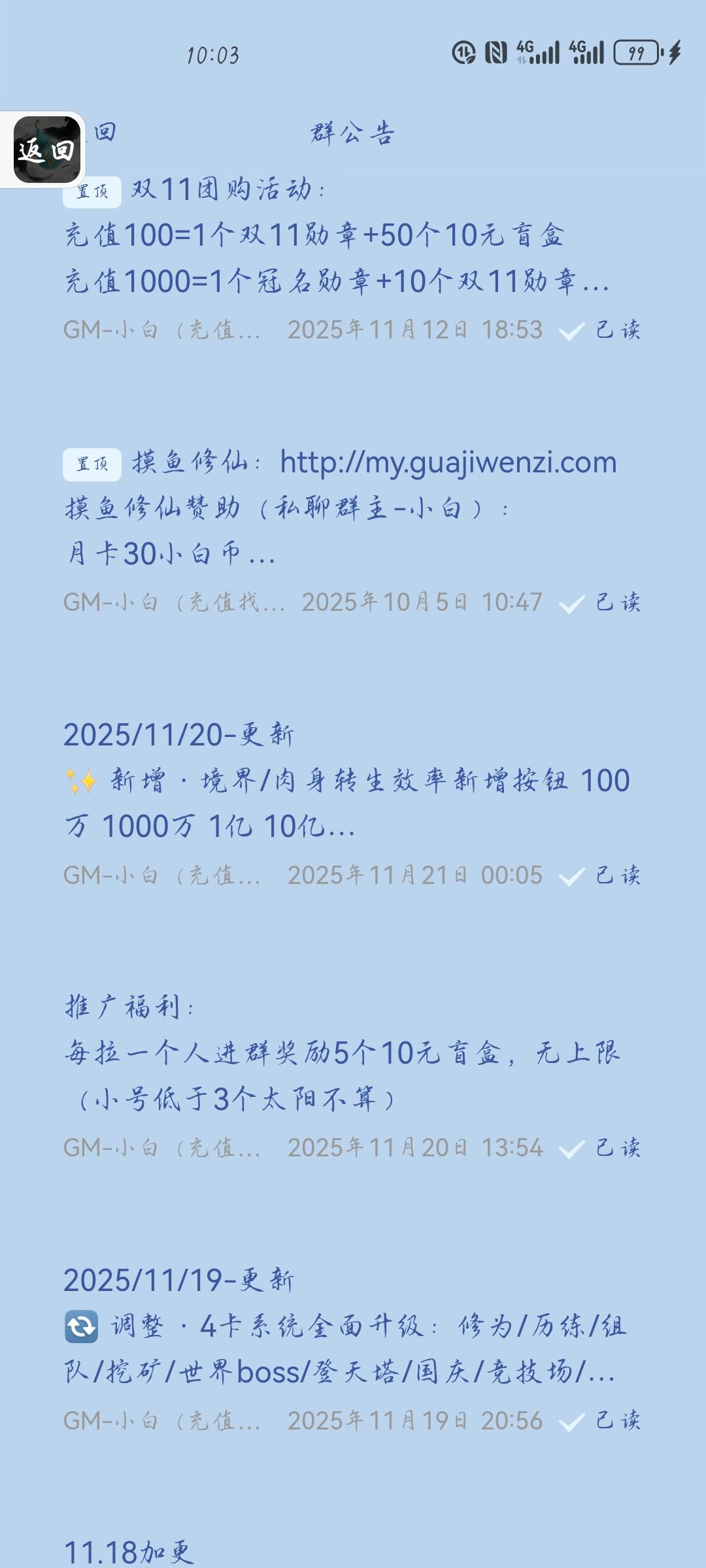 加群了,群公告是充值渠道和更新公告,没有兑换码,在群聊天问也不回新人问题,管理各说各的压根也不理你这个新进来不花钱的人。