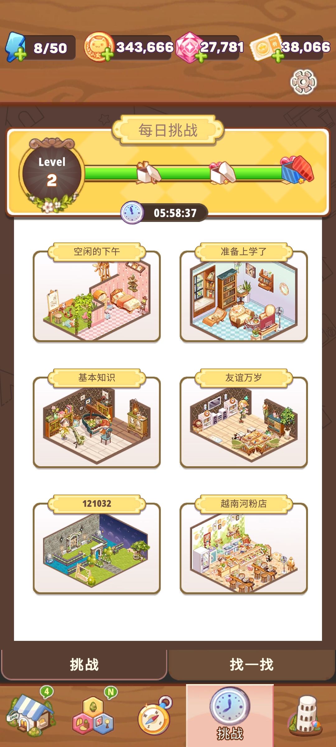 每日挑战会给木头和钻,后期开一个房间格子要很多木头,过完主线基本只有每日挑战可以得木头,找一找那边过关奖励可以抽免费家具,个人感觉性价比很低不如看广告😇
