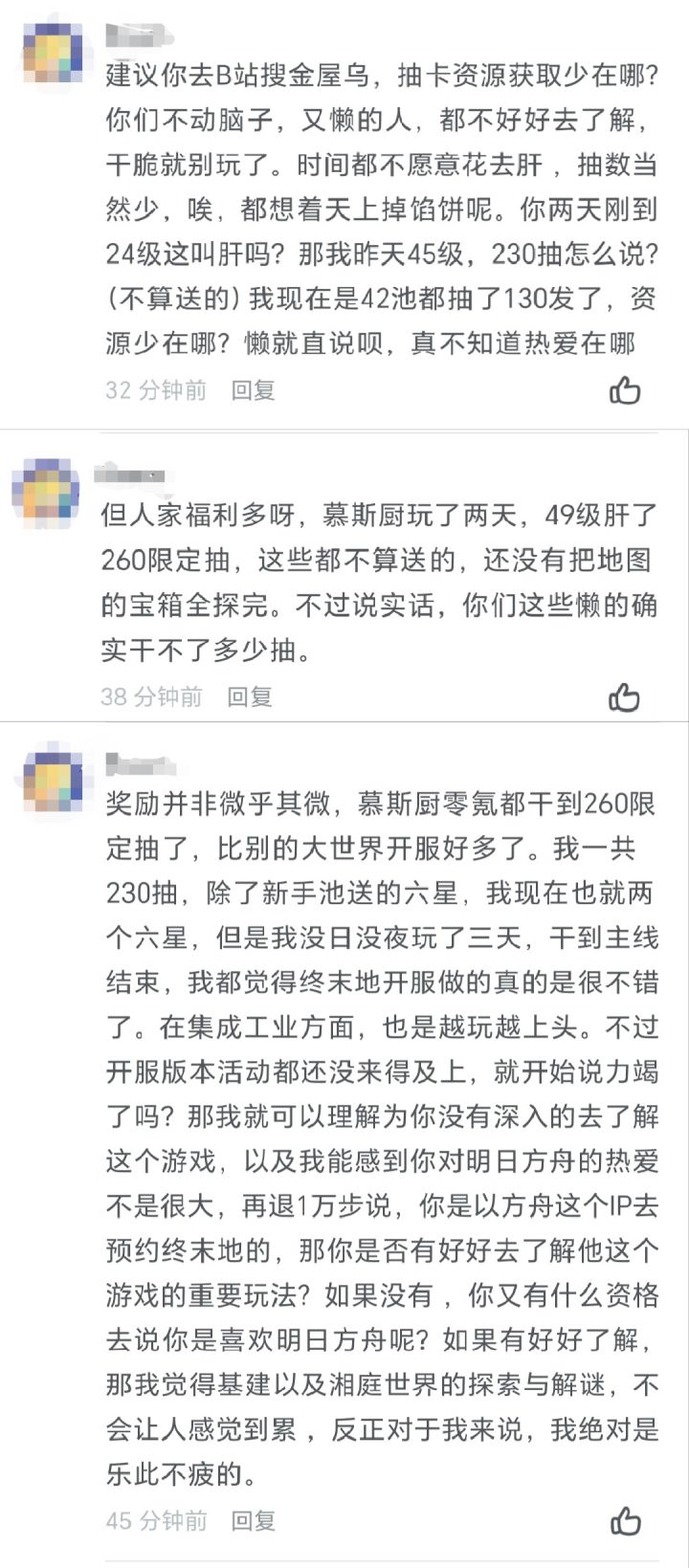 其中基建:真想入坑自动化的不如去玩戴森球,看到有工厂老玩家说玩着像qq农场😭(“基建深度就和戴森球蓝糖产线差不多,自动化工厂玩家也觉得太简单了”),现在的难度在受众看来太简单,而追求每天短时间上个线随便玩玩的轻度化玩家可能又觉得繁琐且难,算上公测的蓝图系统,目前这个玩法定位你司内部依然不明确😓