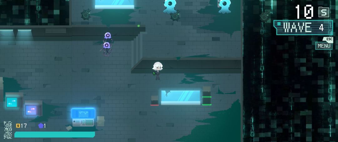 平面肉鸽游戏,继承了肉鸽的局内经验值设定,升级可以三选一增益。战斗体验有些奇葩,放在一个角落里就行,攻击是自动的,怪物随着波次数量逐渐增多,只会沿着固定线路走,靠近之后才会扑向主角。武器自动攻击,方向上存在一定不可控性,子弹物理碰撞点不清晰,体验层感受很奇怪。有简单的剧情对白和引导,上手不太难。