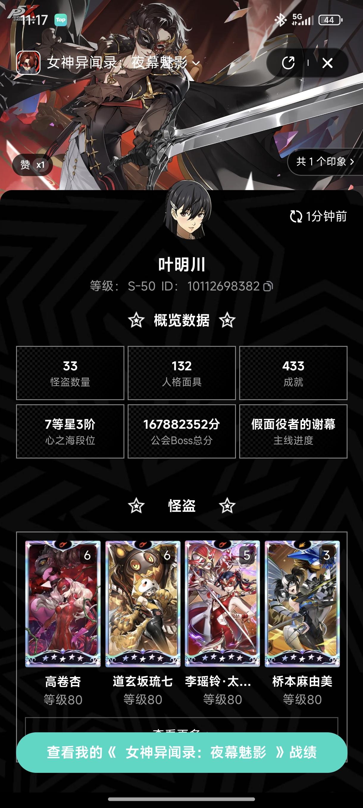 p5x我玩的也有一年半了,前前后后也有4个号中间退坑了一段时间,后面又重新回坑,我也算半个大佬作为一个副游p5x也算成功了。