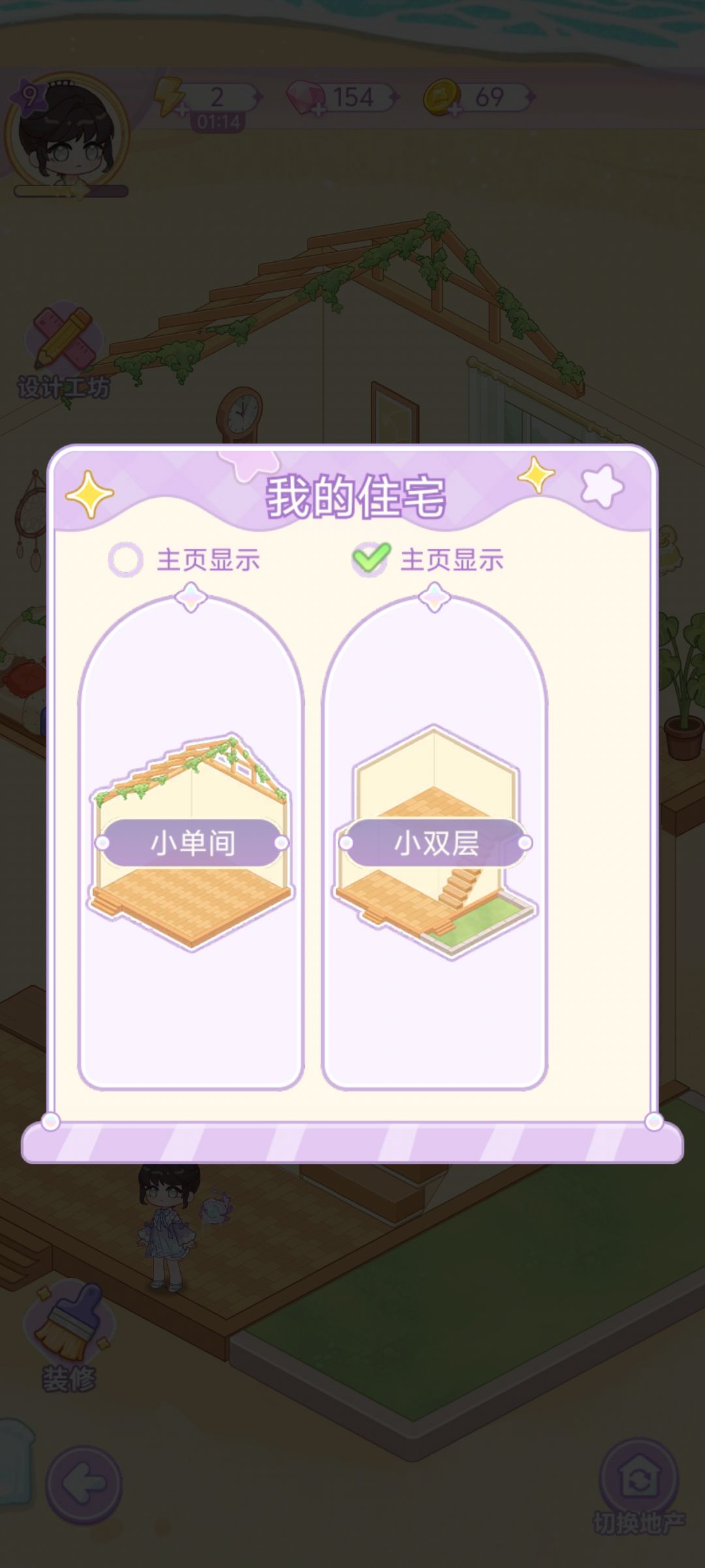 我在没有很了解游戏玩法的情况下开始玩的,一开始看到是棋盘合成类的游戏心里就大概有数了。很多小程序都是通过合成提交订单赚取货币来解锁主线:修复、装修荒废的家或者要开的店,每解锁一次会放一段剧情对话,让你选一个家具装修,同时随着推进会解锁不同的npc