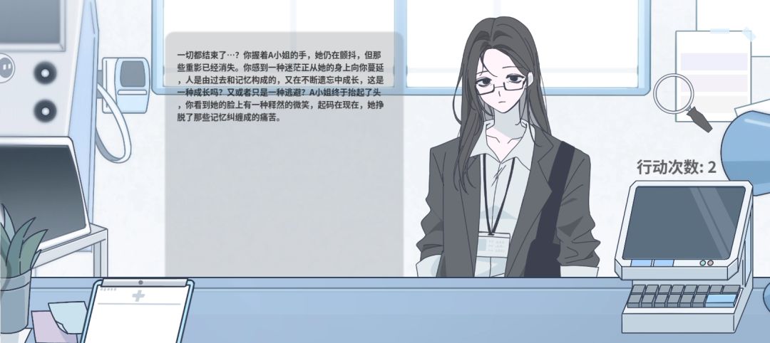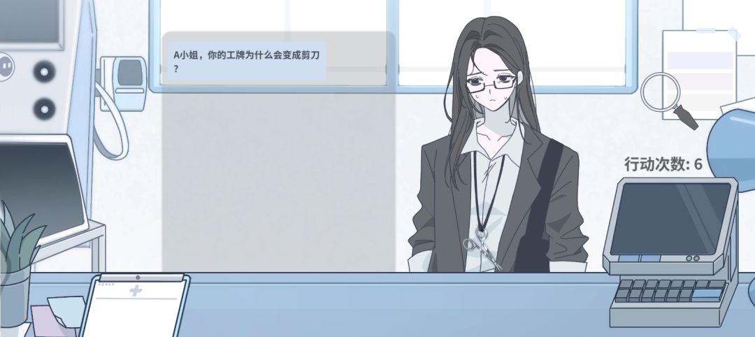 因为对话框的形式看着像线上咨询,还以为人物是玩家扮演的“医生”,没仔细看过。最开始不知放大镜可移动。知道后一直在想把放大镜移动到哪里?A小姐都不在画面中。玩了快十分钟,过了几次,才发现:不对,好像A小姐就在我面前。好吧,鄙人确实有点瞎还不太聪明。