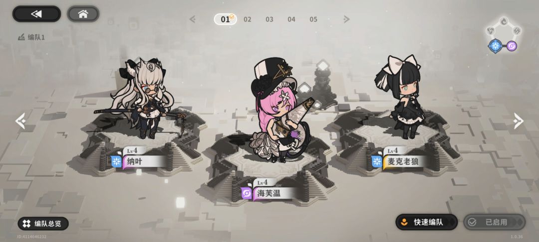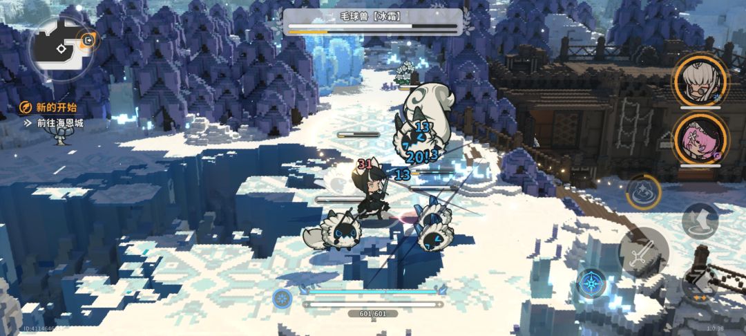 美术采用3D像素风场景与2D纸片人角色结合的表现方式,整体界面布局很干净,提出中心区域。UI大部分都收在抽屉里,按钮相对较小,手机屏小一点点击都很费劲。