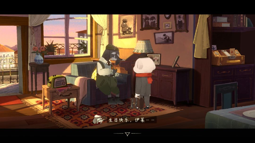 尼柯听到烟火绚烂的声音会下意识捂住大耳朵,已经是战争带来的最无杀伤性的影响。(兔子玩偶:对对对,那我说啥了,退伍老兵卖糖果咯)但面对丧子之痛的糖果师傅,一时也手足无措,默默流泪,只有嘴角的啜泣和烟雾的弥散在证明时间的流动,此时纵使再多的交互细节,也不如死寂的沉默更为抓心。
