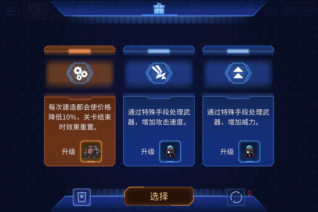 本人刚打完第一个角色科技队长,后面的疯狂难度,确实有点难,不过开局送的三次免费刷新,可以刷一个图2的终极机甲buff,助力前期发育,直接蹲家里等造好科技塔就能直接爆兵一路平推,无敌一开就是硬刚,然后建造炮塔去小怪出生点堵门,炮塔攻击产生机器人小兵+科技塔回血buff,就可以挂机了😆