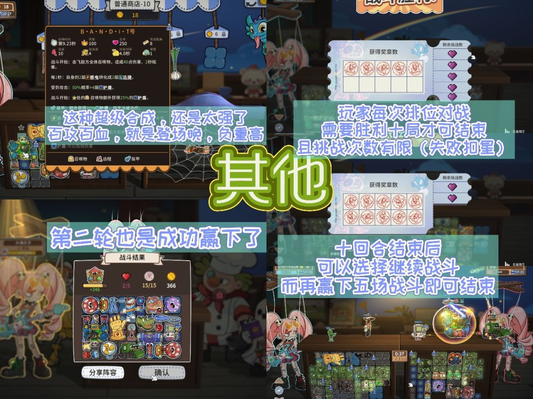 部分关卡流程,基本上是“商店-训练-商店-挑战”,其中训练就是最纯粹的pve,打起来特别轻松,而商店就是可以通过购买玩具、格子来提升实力,挑战便是需要对战的目标,应该是pvp。