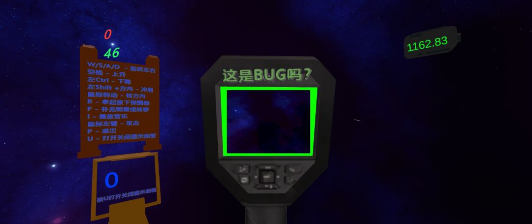 3D空间寻物游戏,玩家设定类似某种修复设施,第一人称视角下代入感很好。操作有些复杂,如果没玩过3D空间类游戏可能会找不到北,设计上有些冗余。核心目标是找到空间场景内的所有词条,将其用陨石来修正,不必走得很近即可攻击。词条与歌词有关,近距离查看都是文本。基础操作用一个面板来介绍,功能介绍很详细,但有一些上手成本。