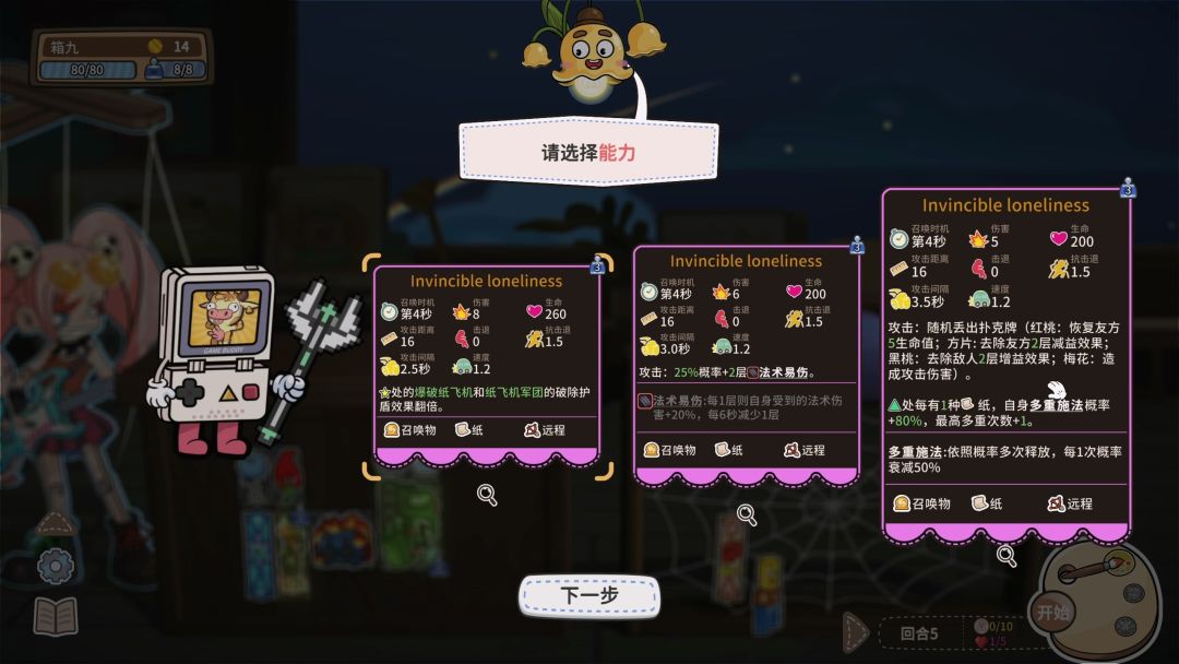 如同游戏名,所有可上场的都是各种玩具,玩具又分召唤物、投掷物、法术等等,再往下细分,玩具还可以分成不同的属性,或者说……材质?毕竟在这里纸飞机也能上桌帮你战斗,而纸飞机的标签就是“纸”,其余的还有食物或者武器等等。