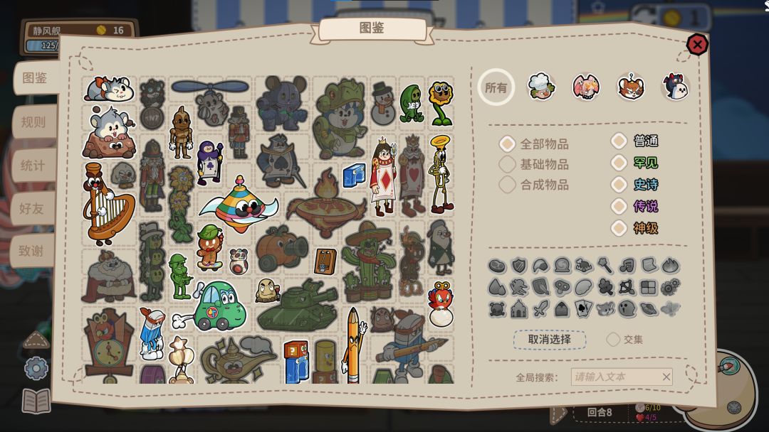 物品直接可以在战斗外合成。物品越合越强,空间也是越合越有。在图鉴中可以对物品进行自由的全局搜索和筛选。输入法的备选项在游戏内也能显示出来,而且还不需要按回车键。
