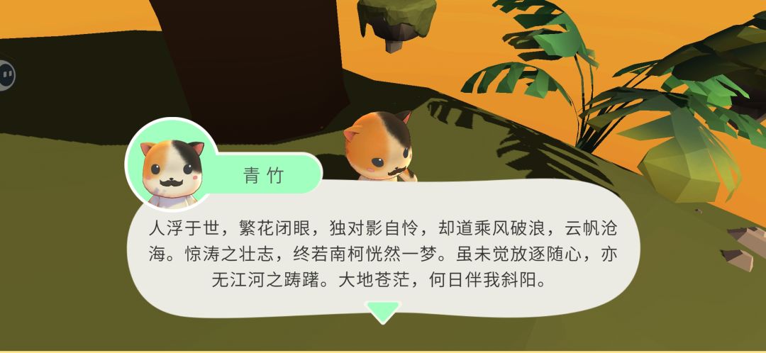 最开始,不知道小猫说的“好像做了个梦”是什么意思,没放在心上,但玩到最后,再读这句,就有点豁然开朗了,人生是一场梦吗?emmm感觉有点类似于循环,有点泛眼泪了,没有真正意义上的终点,你可以随时停随时出发小猫们从稚童到少年到青年再到中年,老年,以及人的一生心理的变化有些话看的我想哭꒦ິ^꒦ິ风景很好看嗷以上是个人玩后感想